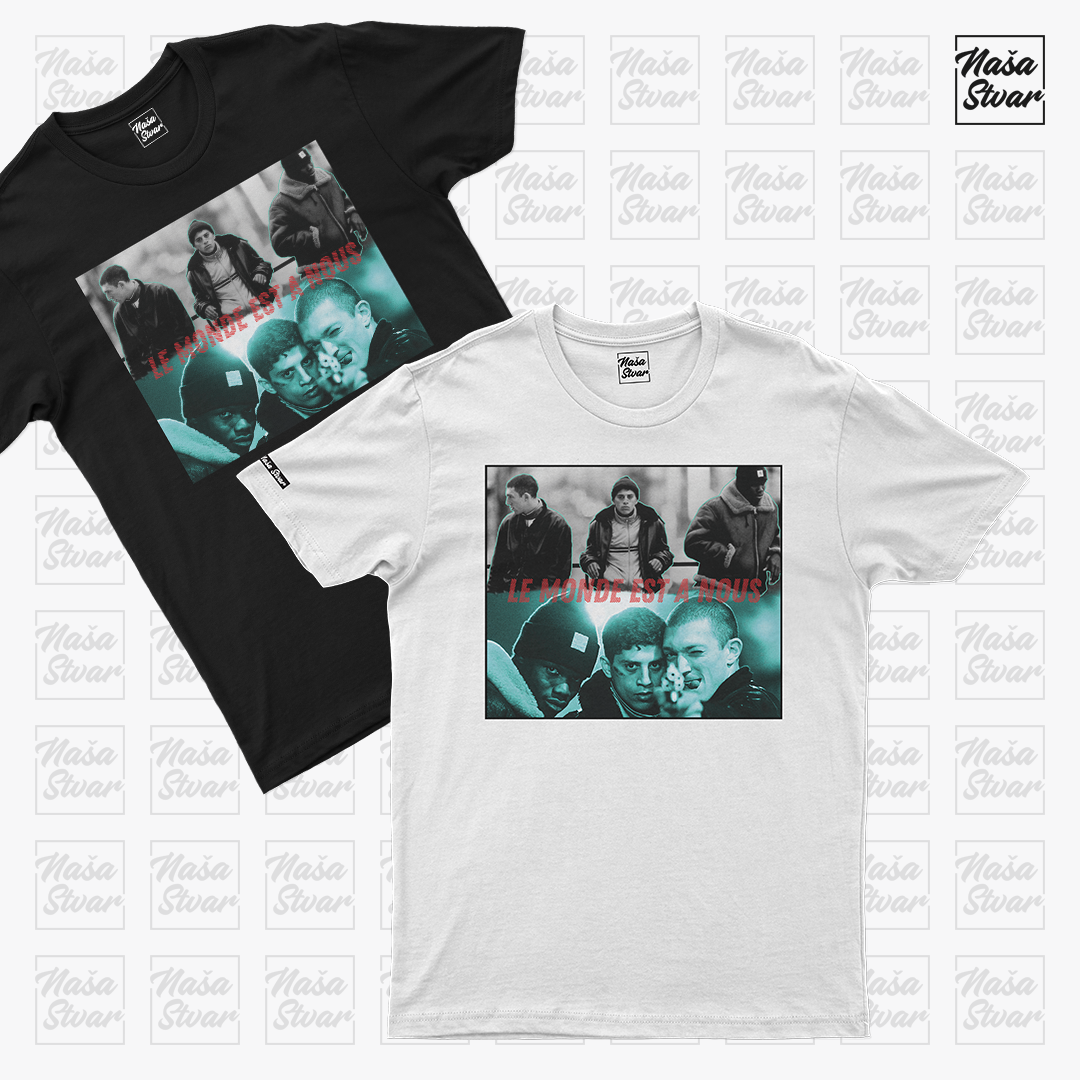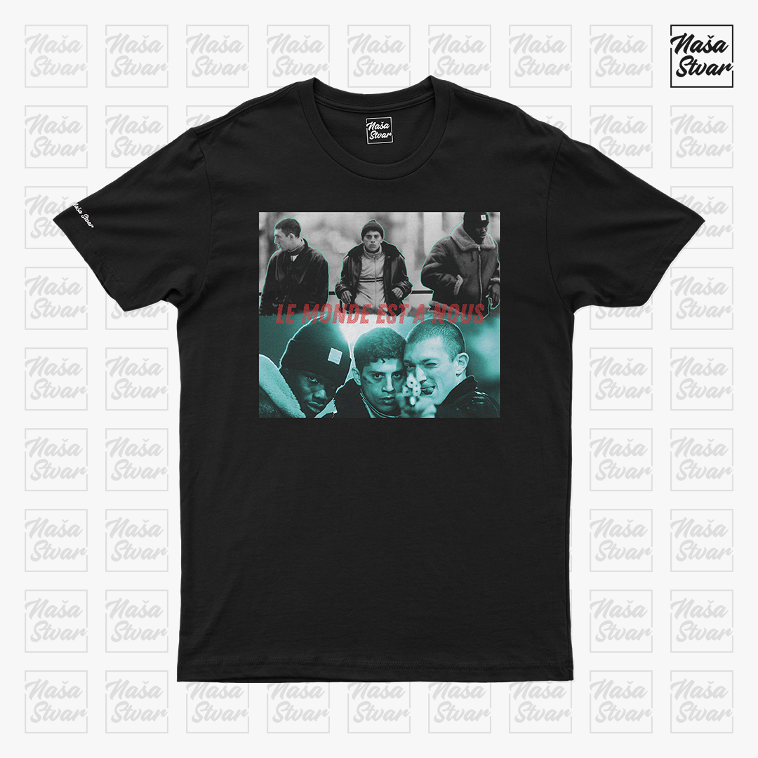 Vinz, Hubert, Said – majica iz kultnog filma „Mržnja“ (La Haine) u crnoj boji.